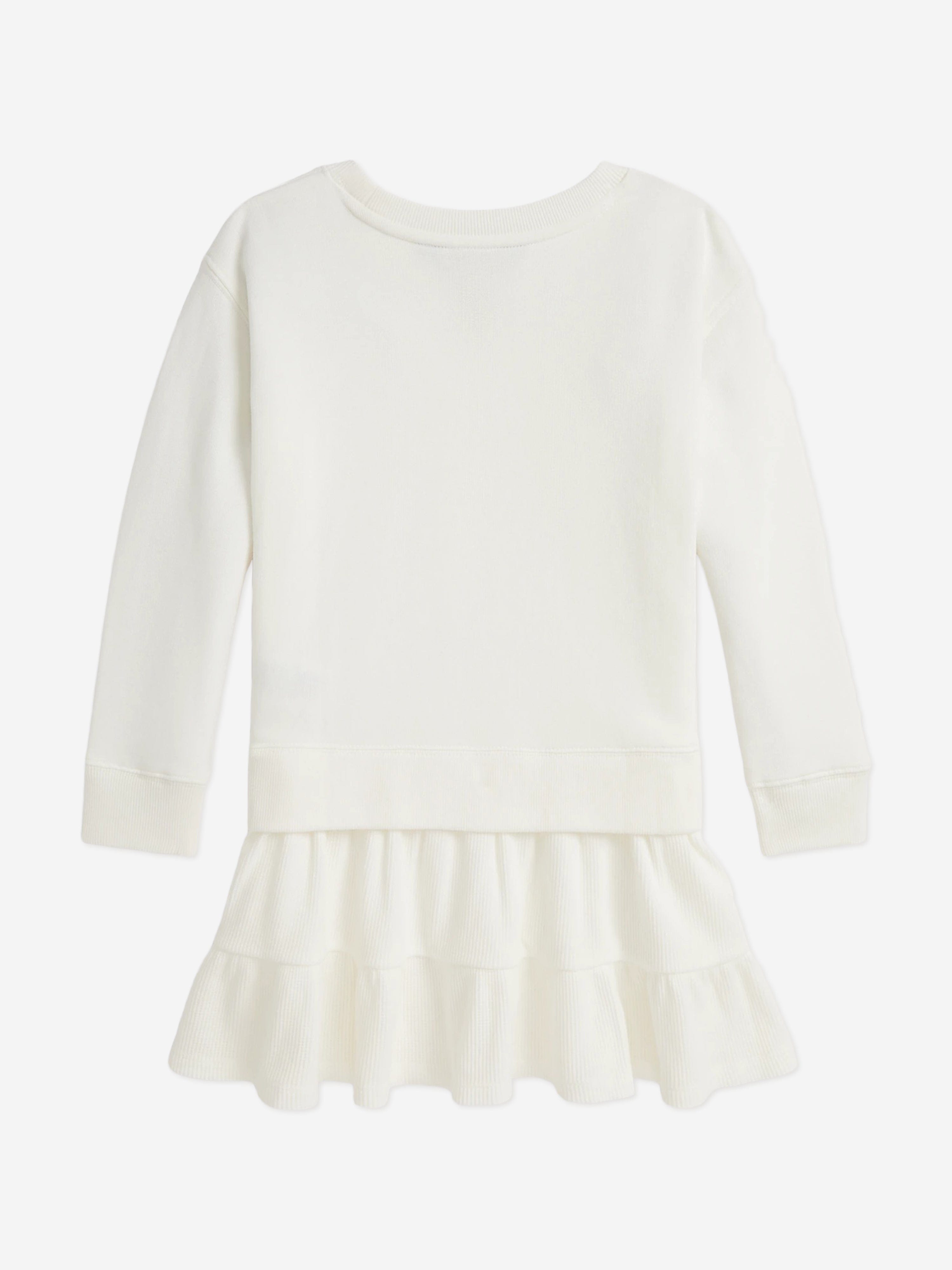 Ralph Lauren’s modern American lifestyle is embodied in their distinctive craftsmanship. This girls trophy cream sweater dress takes inspiration from vintage archives.