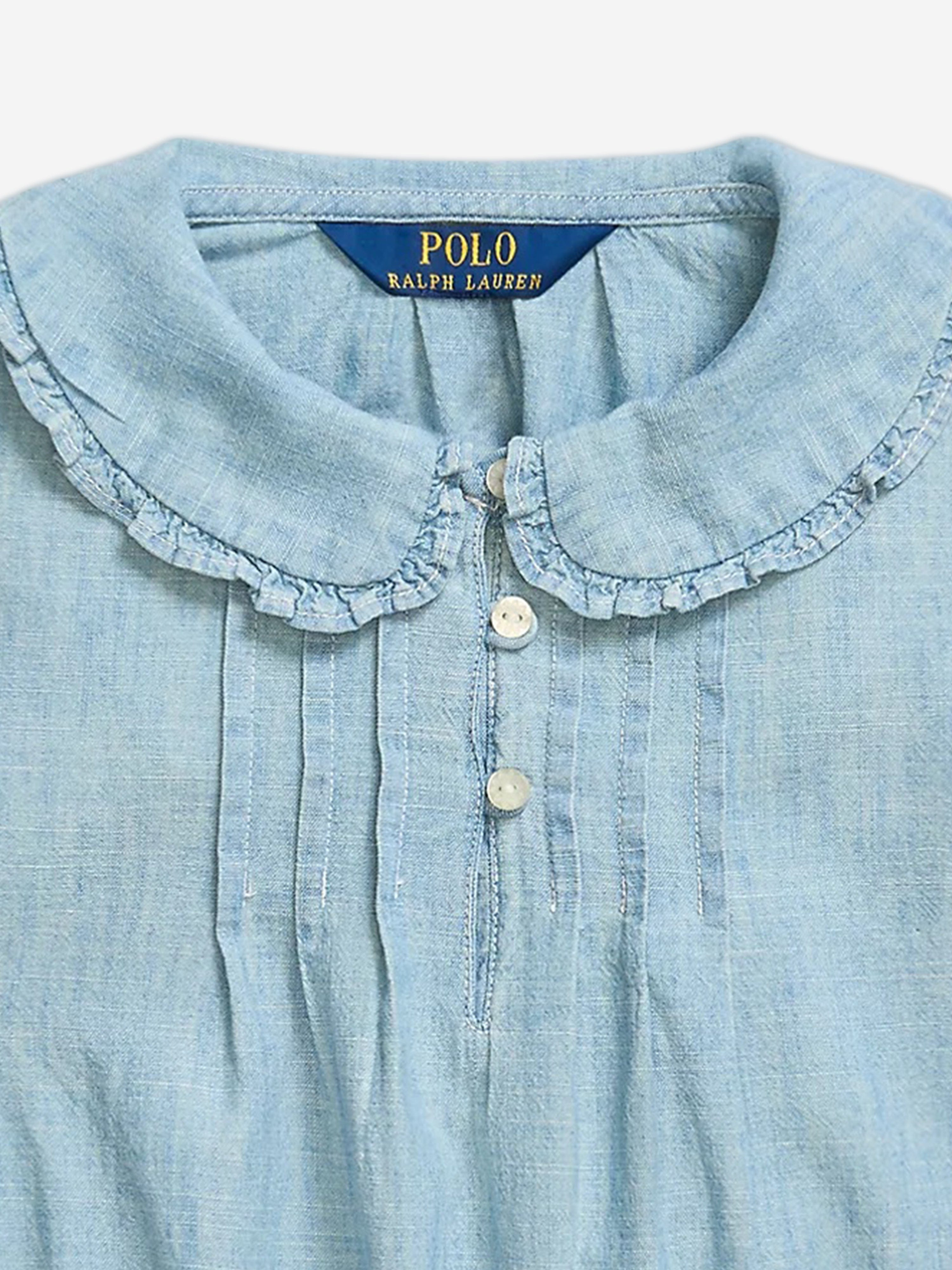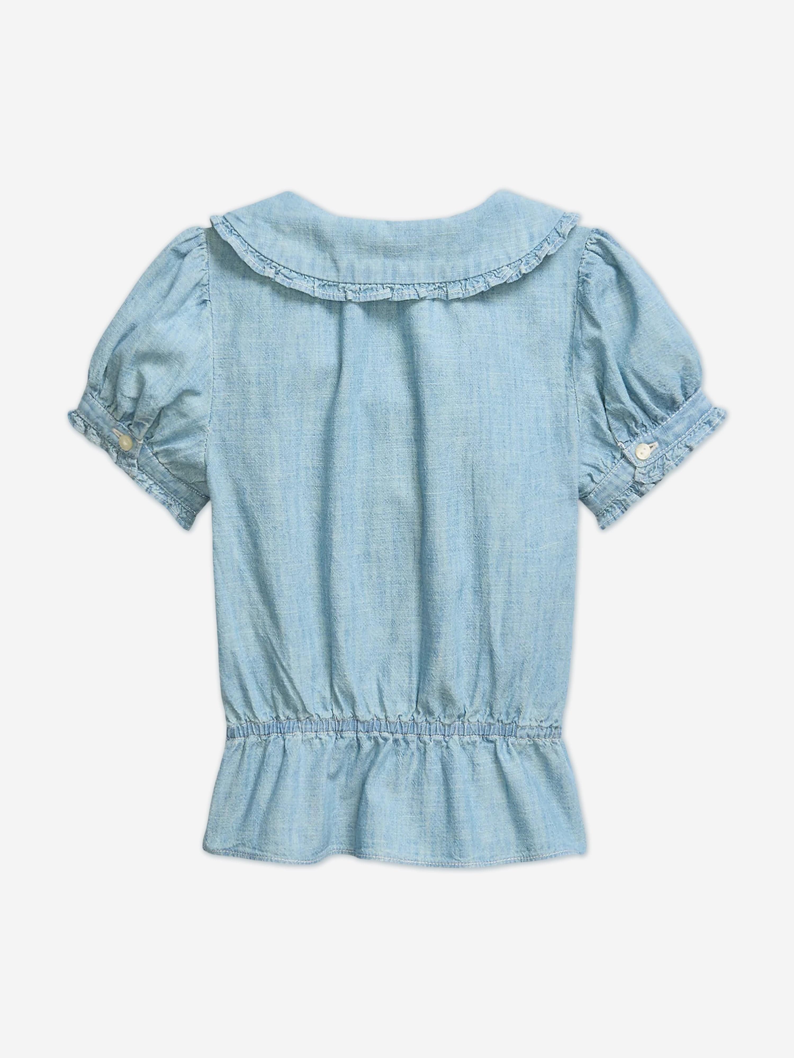 Discover the exquisite Girls Chambray Ruffle Blouse in Blue by Ralph Lauren, a quintessential piece for any young girl’s wardrobe. Crafted with meticulous attention to detail, this blouse embodies both classic charm and contemporary elegance. Key highlights include: