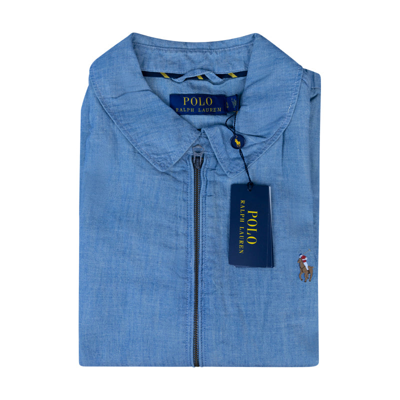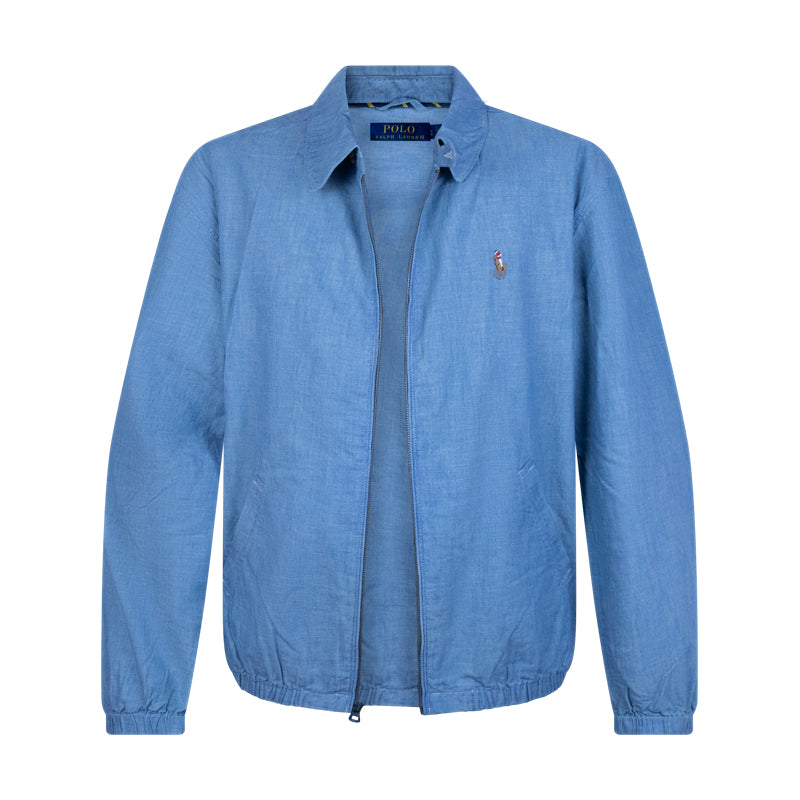 Discover the Ralph Lauren Polo Bayport Chambray Jacket in Blue. A staple that blends elegance with understated style. This classic jacket embodies Polo Ralph Lauren’s signature aesthetic, suitable for any modern gentleman’s wardrobe.