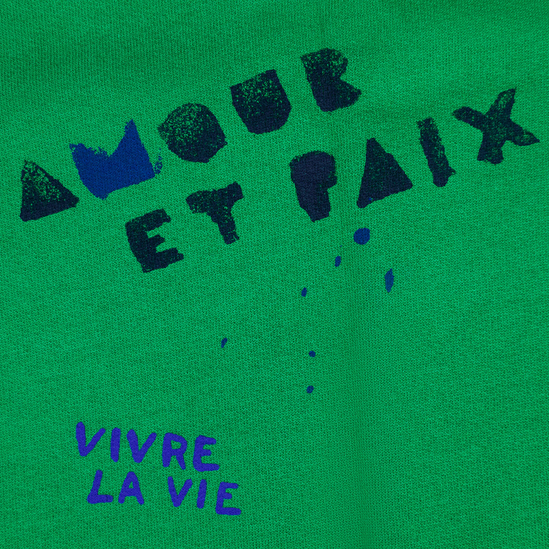 Embrace the essence of Paris with the Ralph Lauren Polo Love Peace Paris Sweatshirt in green. Crafted from a comfortable cotton-blend, this sweatshirt captures the spirit of the season’s Parisian-inspired theme. Its vibrant graphics, including “Polo Forever” in French, add a creative flair to your wardrobe.